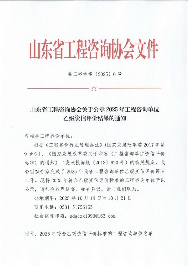 关于公示2025年工程咨询单位乙级资信评价结果的通知