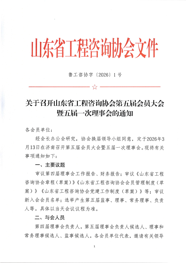 关于召开山东省工程咨询协会第五届会员大会暨五届一次理事会的通知